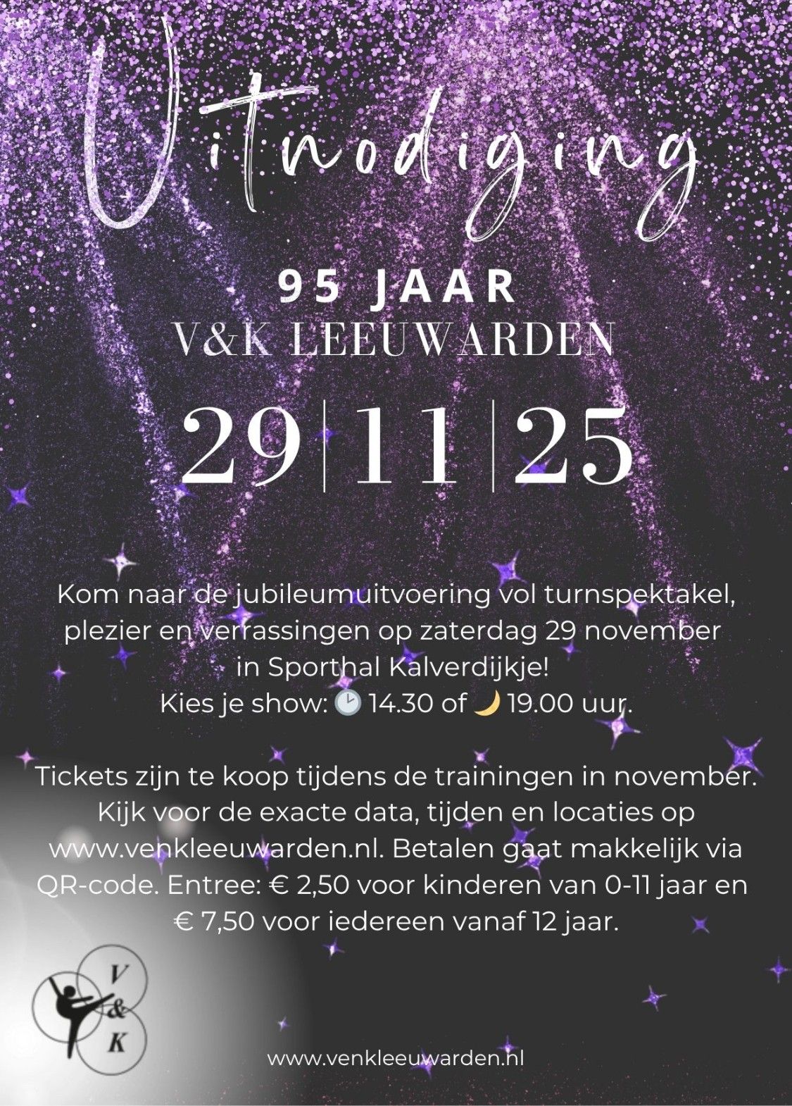 Wat een mijlpaal! Onze turnvereniging bestaat dit jaar maar liefst 95 jaar en dat vieren we met een jubileumuitvoering vol turnspektakel,plezier en verrassingen!